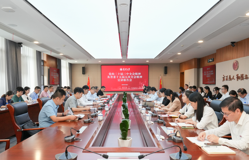 9月26日上午,副省长张雁云来校宣讲党的二十届三中全会精神、省委十五届五次全会精神,进一步推动全会精神落实落细、见行见效。省政府副秘书长李耀武,嘉兴市委常委、副市长齐力出席。校党委书记沈希主持。