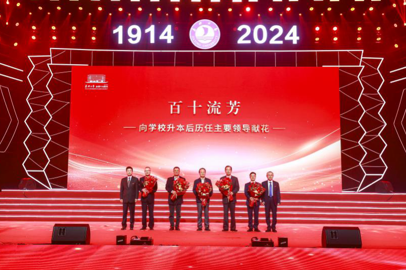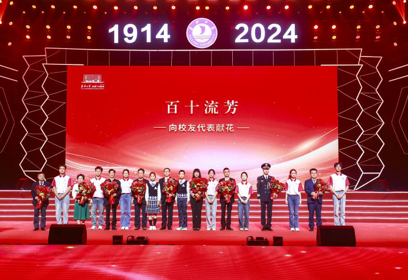 岁月如歌,百十流芳。学校主要领导、新入职教师代表、在校生代表分别向学校老领导、终身执教教师、校友代表献花。
