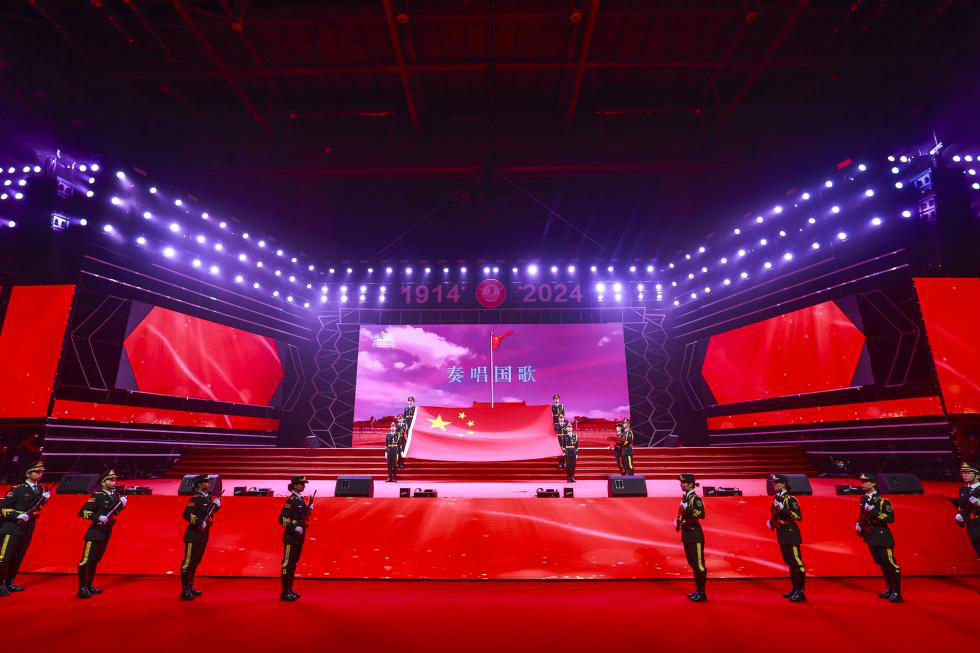 大会现场,举行了迎国旗仪式。这面国旗是2024年1月18日太阳成tyc7111cc揭牌当天在天安门广场升起的国旗。现场人员全体肃立,面向国旗,奏唱国歌。